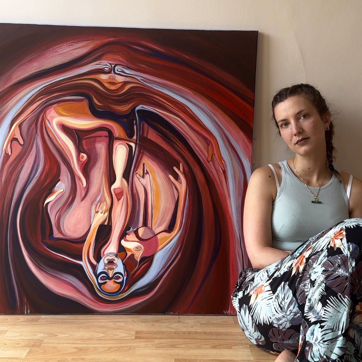 Sára Várady (b. 1992, Budapest, Hungary) began her art studies in 2012, receiving the Art of Evolution Foundation by Montázs Arts Studio. She subsequently completed a year-long mentor program in Painting and Graphic Design at Óbuda Art School and an additional year-long painting course focused on Fine Arts. She earned her first degree, a BSc in Industrial Design, from the Budapest University of Technology and Economics. With direct entry into the second year, she pursued a Fine Art BA at the University of Dundee, Scotland. During her studies, she participated in the ERASMUS program at Universitat Politécnica de Valéncia, Spain, where she specialized in anatomical drawing and oil painting. Varady also received a full scholarship for the Summer School at the East China University of Science and Technology in Shanghai, China.