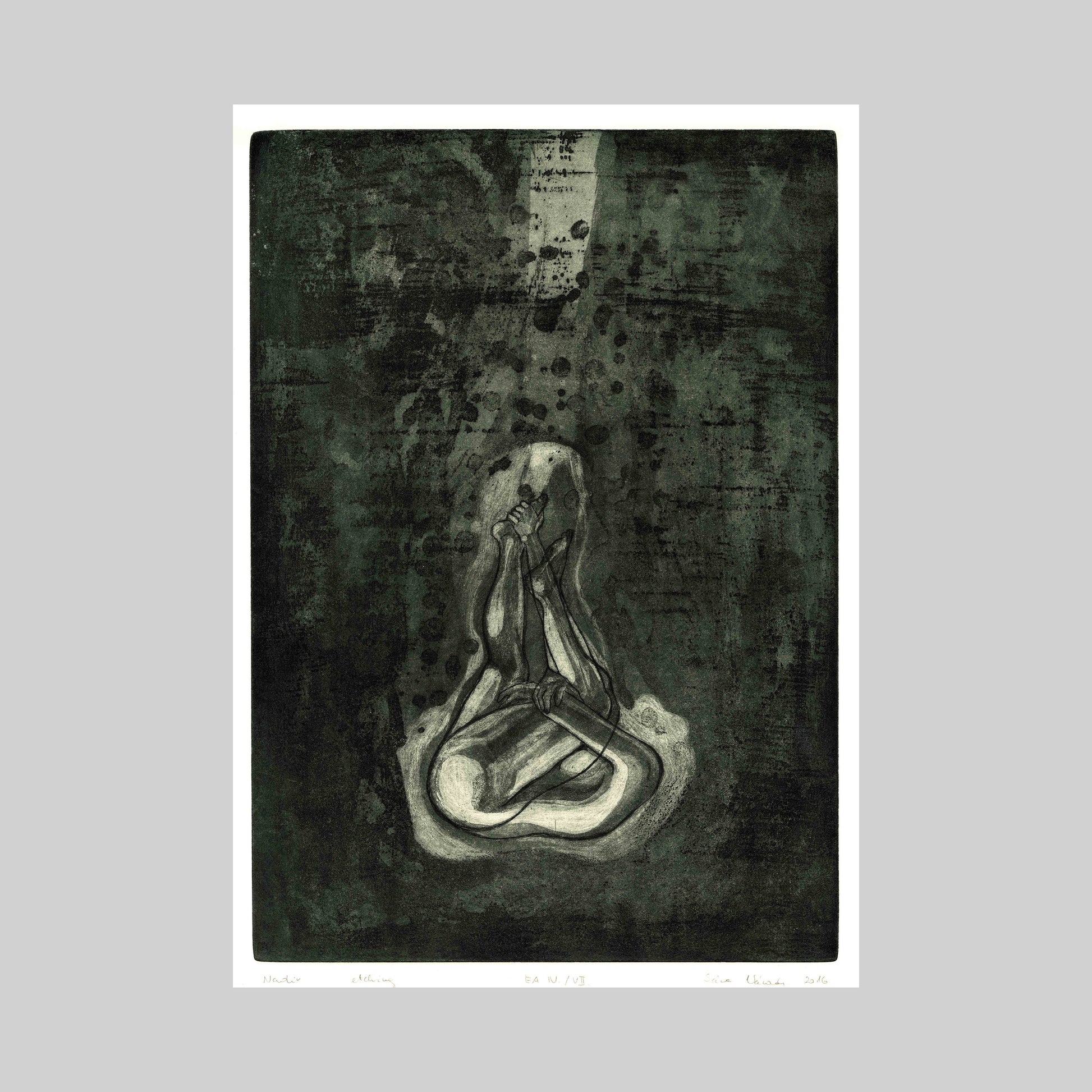 ‘Nadir’ is an etching, 42 × 29.7 cm, and comes in an edition of 5. It depicts a woman submerging into water — a moment of surrender, of falling deeply into something greater. It might be your inner world, a particular chapter in your life, or a connection with nature and your surroundings. It represents a time of solitude and introspection, from which you eventually reemerge stronger and renewed.