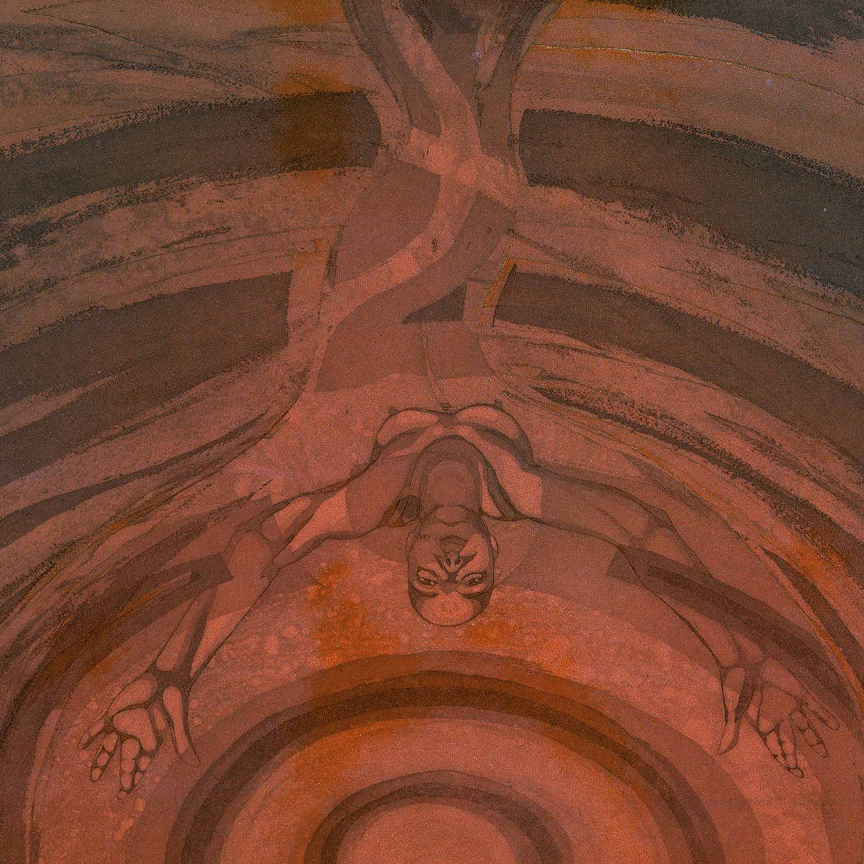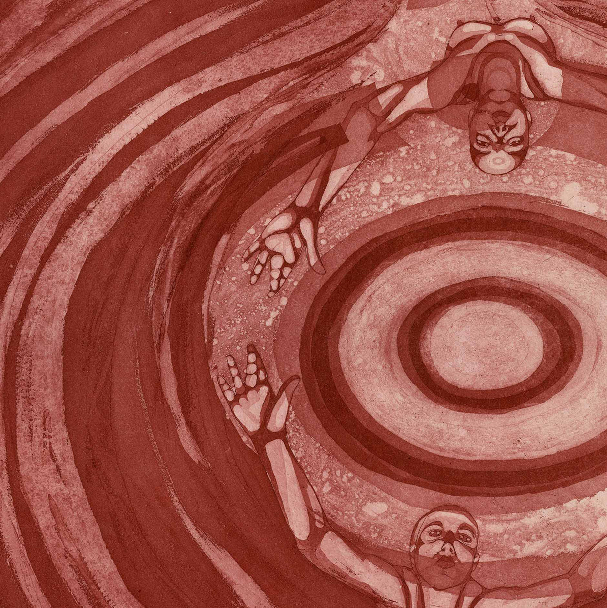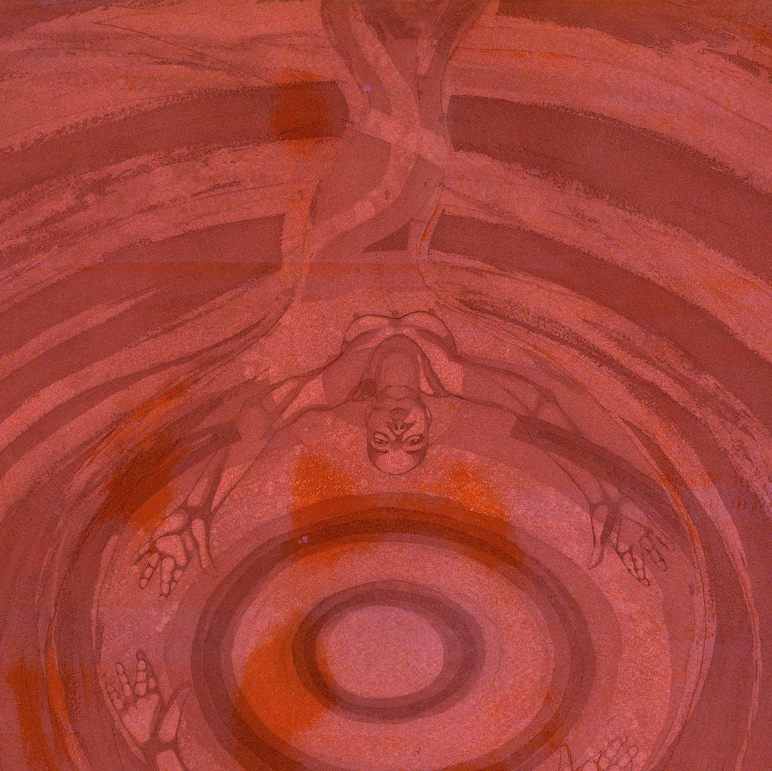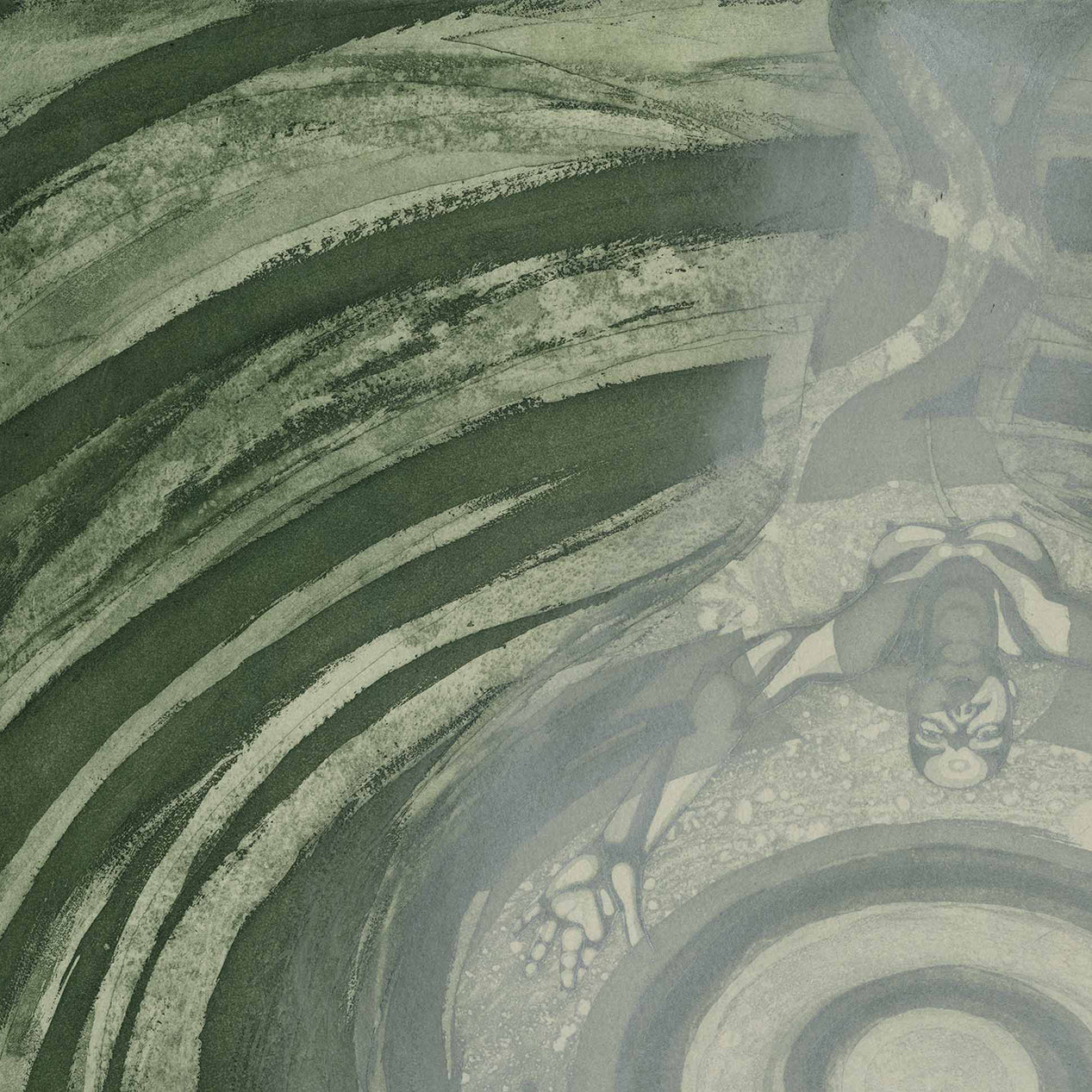 'Bigger than Me' is an etching, 50 × 50 cm. The original etching was printed in red and is available in an edition of five. The additional prints shown here are unique, one-off variations created through experimentation with colour and viscosity printing—a technique in which the viscosity of the inks is adjusted and layered so the colours remain distinct, creating depth and subtle texture.