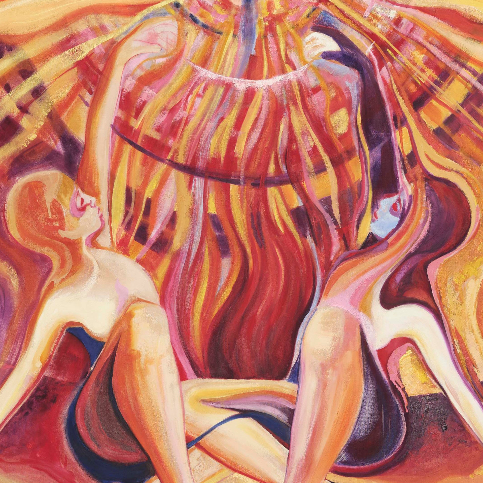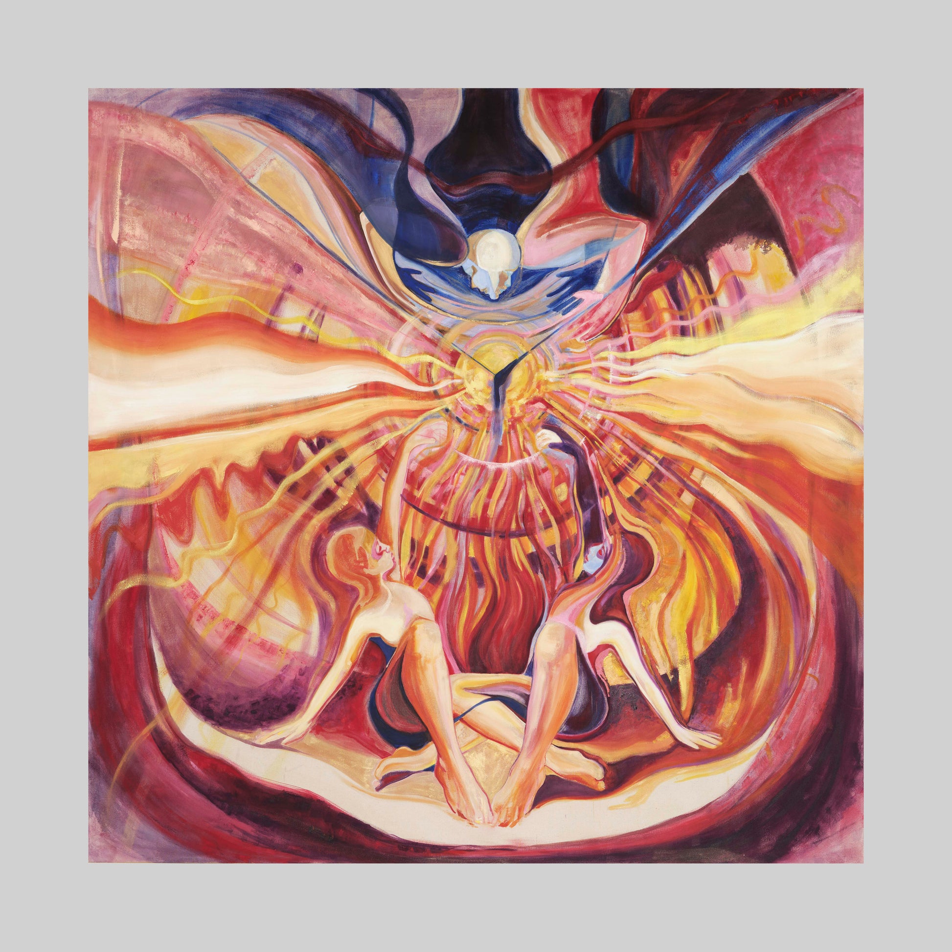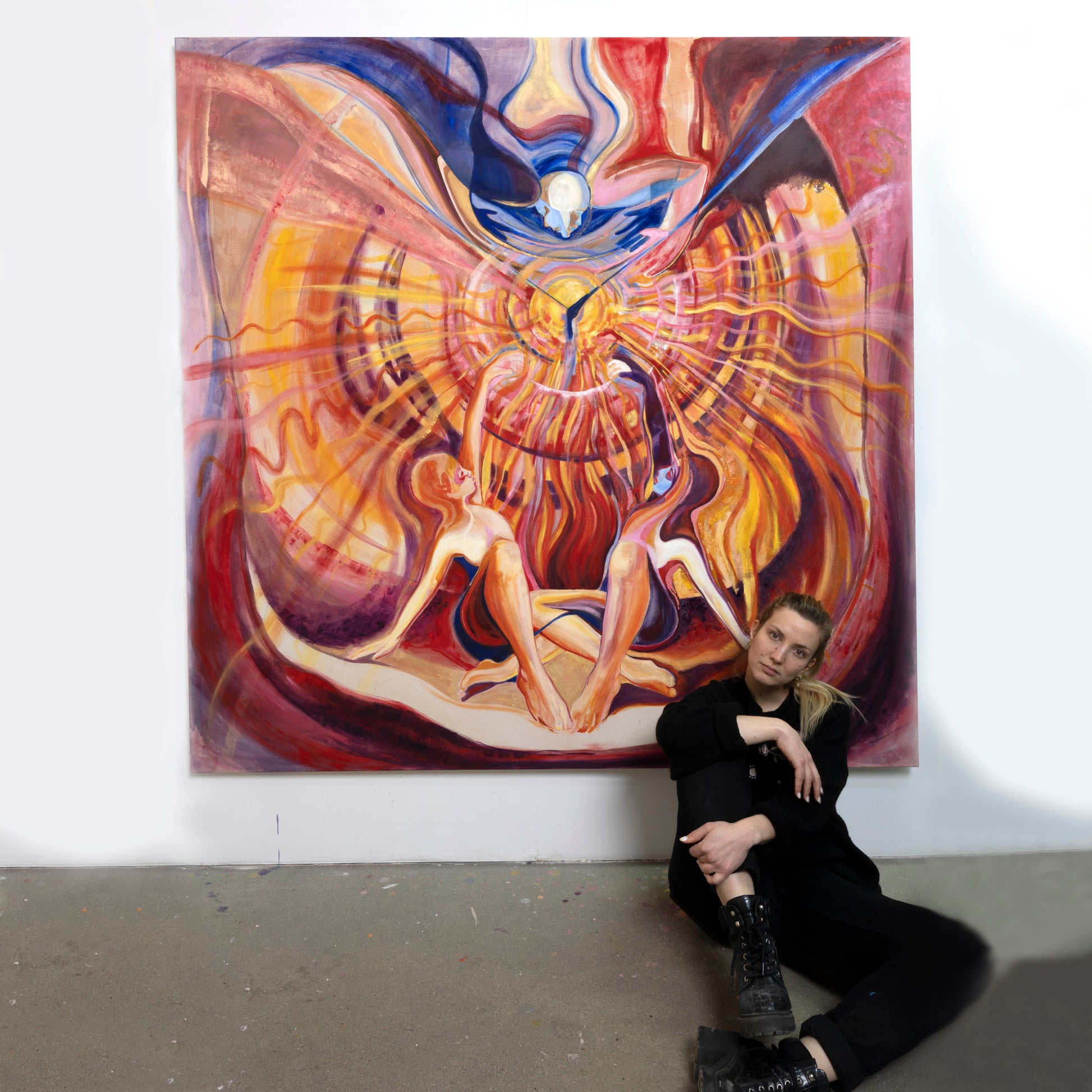 This oil painting, measuring 2 metres by 2 metres, is titled ‘Musica Universalis’. It is inspired by the philosophical concept that the movement of celestial bodies — the Sun, Moon, and planets — creates a form of music that can be heard by the soul. For me, it represents the idea that we are connected to the universe in a deep and mysterious way, which feeds my creative life and helps me to cultivate the feeling of love and joy.