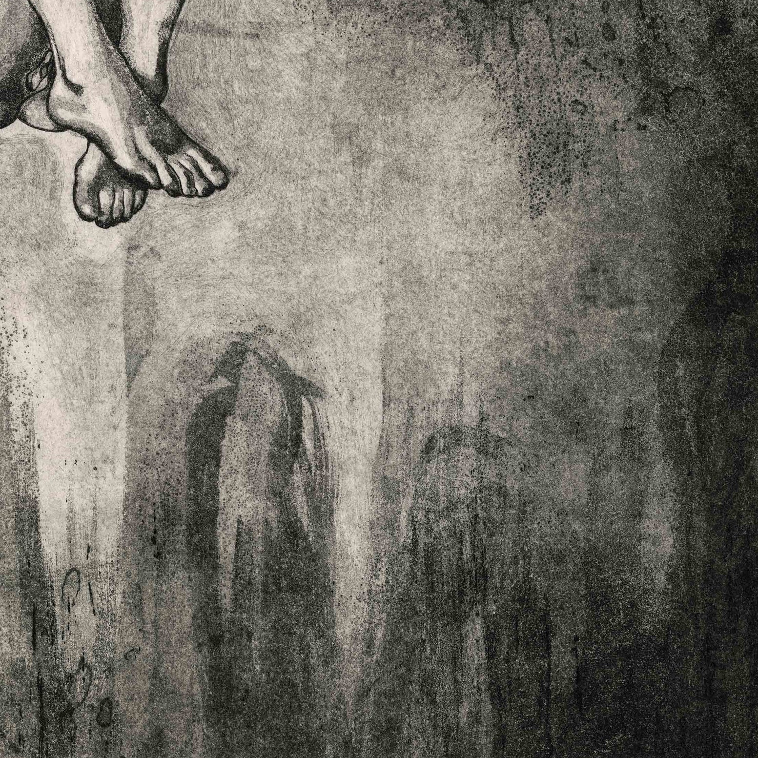 'No Space to Escape' is an etching, 59.4 × 42 cm, available in an edition of five. It depicts a woman surrounded by darkness, curling inward. Though she may feel trapped or hopeless, the only light in the image still falls upon her—symbolizing the quiet persistence of hope. The path forward lies not outside but within, waiting to be discovered through introspection and inner strength.